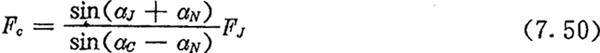 從方程組(7.49)的前兩式中消去FN,并將所得式子中的FC用(7.50)式代入,可得: