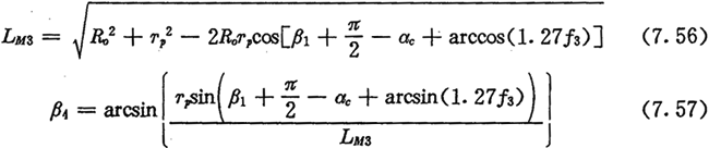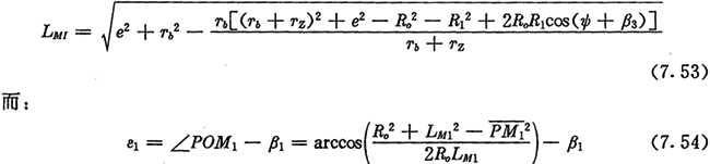上式中的LMI表示激波器與內滾子的接觸點M1離轉動中心O的距離,可從圖7.6中的△OBM1求得:
