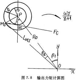 上式中LM3為傳動圈對軒動機構總作用力FC的作用點M3離轉動中心O的距離,如圖7.8所示。從圖中△OM3P可得: