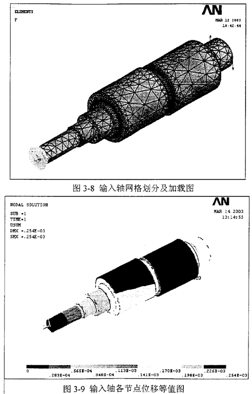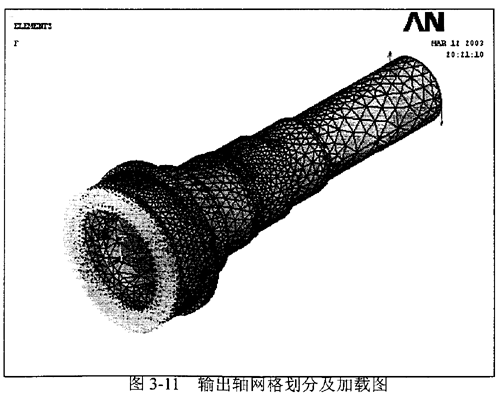 3.3.2.2輸入輸出軸的強(qiáng)度分析 同樣將Pro/ENGINEER中創(chuàng)建的輸入軸和輸出軸模型以IGES格式導(dǎo)入ANSYS中,并作適當(dāng)拓?fù)湫扪a(bǔ),完成預(yù)處理中實體模型的建立。