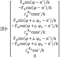 當對兩相平行軸擺線針輪減速器求解時,△φ2=180,第三塊環板因每輸出扭矩,其相應的Fn=0;而對三相平行軸擺線針輪減速器,△φ2=120,△φ3=240。