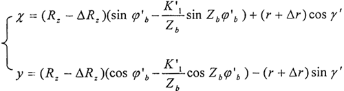 擺線輪的齒廓修形量是影響RV減速器傳動性能的重要參數,首先需建立一個概括上述的前兩種修形方法的通用擺線輪齒廓方程式,只要將標準齒廓方程式(3-l)中的Rz以(Rz-△Rz)代替,K1以K1′=e*zb/(Rz-△Rz)代替,r以(r+△r)代替,即可得到通用擺線輪齒廓方程式為: