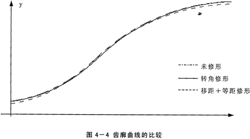 以上三種齒廓修形法中,轉角修形法不僅機構調整麻煩,而且不能單獨使用,然而采用適當的移距修形量和等距修形量相組合的方法可使磨削出的齒廓與用轉角修形法得到的齒廓相接近,因此在傳動中可使多對齒同時嚙合,并且在齒頂和齒根處均有間隙存在,采用這樣的修形方法磨削擺線輪比轉角修形法方便得多。