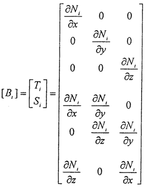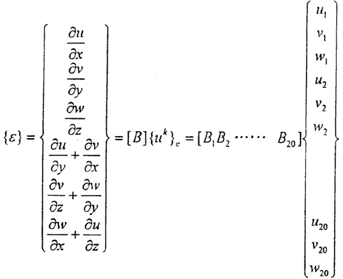 代入式(3.1.3)由此推出應變與節點位移關系: