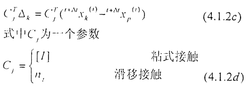 (1)粘式:兩物體接觸的點無相對運動,變形前后接觸點的局部坐標值相同。