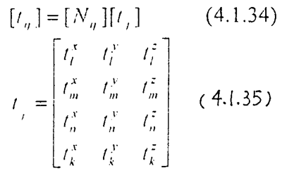 矩陣內(nèi)項表示分布力在單元角點(diǎn)l,m,n,k上沿x,y ,z的分量。對于一個單元有
