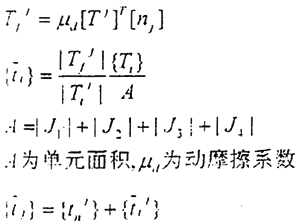 (三)滑移接觸:如果第j 個接觸元上切向合力絕對值大于靜摩擦力且法向合力為正,即