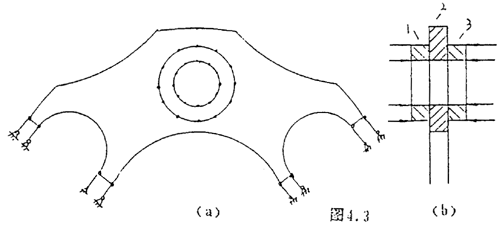 為了分析方便,我們依然取疊片的2/n來分析,當聯軸器傳遞扭矩時,疊片受到主、從動法蘭盤上的聯接螺栓的作用,其作用的載荷是反對稱載荷。