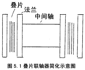 由第二章所示撓性疊片聯軸器的結構可知,兩端法蘭盤(連接主、從傳動軸)均可看做是剛固的,而中間軸法蘭a可看做是加在兩組疊片上的質量塊。