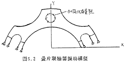 由于APOLANS程序的局限性,不能計算磨擦狀態下的振動問題,因而本文所討論的疊片振動問題將忽略磨擦對它的影響。我們應該以整個聯軸器來進行計算以確定其系統的特性,但由于程序本身的問題,不可能整個系統分毫不差地組成計算模型,因而必須對整個系統進行簡化,當然,如何簡化才是適當的對計算結果的正確性影響很大。