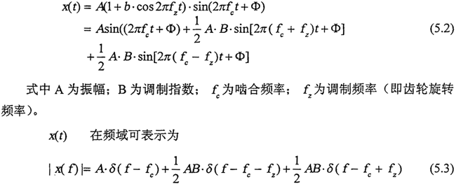 若xc(t)=A·sin(2πfet+φ)為嚙合振動載波信號,a(x)=1+b·cosπfzt為齒輪軸的旋轉調制信號,則調幅后的振動信號