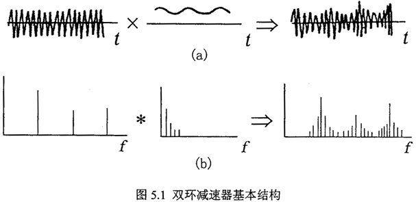 調制后的信號,除原來的嚙合頻率分量外,增加了一對分量(fc+fn)和(fc-fn)它們以fc為中心,以fz為間距對稱分布于fc兩側,所以稱為邊頻帶,見圖5.1所示。上述原理不但適用于像齒輪偏心的故障,也適用于可產生沖擊信號的其它故障,如崩齒、齒面剝落等。
