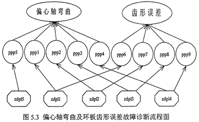 根據以上分析,本文用圖形化的智能故障診斷預報系統(INCON FIDPS), 建立了雙環減速器偏心軸彎曲及環板齒形誤差兩種故障的推理流程。如圖5.3 所示。