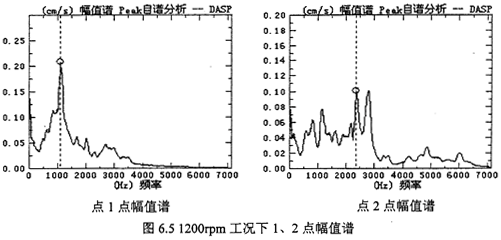 (3)從表6.1及圖6.5分析可看出,各測點振動幅值譜嚙合頻率及兩倍嚙合頻率其幅值為最大或較大,表明減速器兩端偏心軸轉動一周過“死點”位置時,減速器有沖擊振動現象。