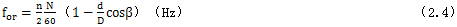 2.軸承等傳動件產生的激勵頻率滾動軸承旋轉頻率為: