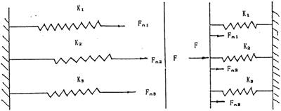 實際上,環板的受力與Fn(ф)有關,因為三塊環板共同受載時彼此約束,構成靜不定系統,如簡化模型圖2-8所示。