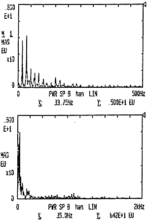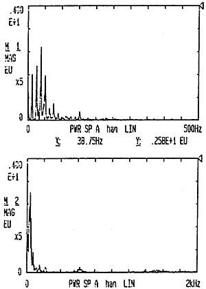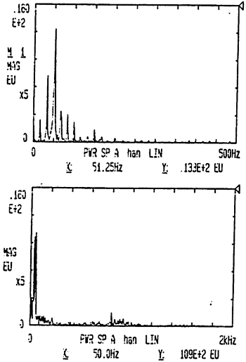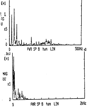 如圖6-14、圖6-15、圖6-16、圖6-17、圖6-18、圖6-19及圖6-20示,圖中示出了各種工況下,頻率范圍為0~500HZ和0~2KHZ速度自功率譜密度函數的對比,從圖中可以看出,速度自功率譜密度函數值主要集中在500HZ頻率范圍內,這樣,我們以0~500HZ的范圍來計算均方根速度的精度是足夠的。根據CF-355內部設置知時間