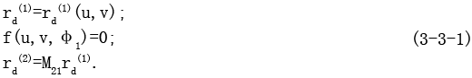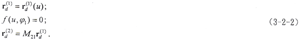 若在變形狀態(tài)下Σ1d為已知,則可求得與之共軛的變形基本曲面Σ2d。若將(3-2-1)式表示為