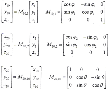 式中 M21——S1、S2坐標系轉(zhuǎn)換矩陣