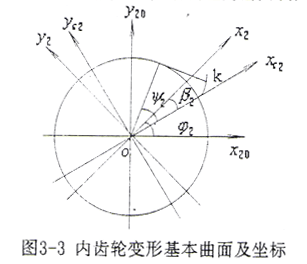 為了求解變形,還需求得內(nèi)齒輪輪齒另一齒面的變形基本曲面方程,如圖3-4所示。