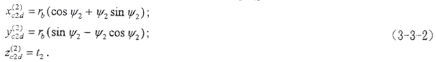 xc2軸通過漸開線在基圓上的起點。(o,xc2,yc2,zc2)坐標系下的曲面方程為