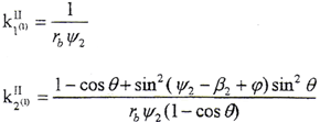 式中 ψ2——齒面參變量,設α2為齒面某一點K處的壓力角,則有ψ2=tgα2。