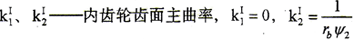 經求解得到內齒輪齒面的兩個法曲率主值為