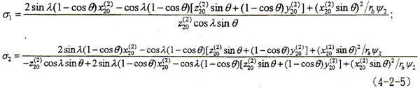 將(4-1-1)式轉換到S2坐標系,方程為