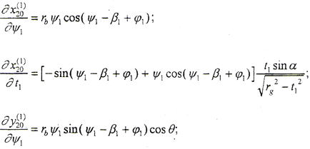 式中 ψ1、t1——齒面參變量,設α1為齒面某一點k1處的壓力角,則ψ1=tgα1。