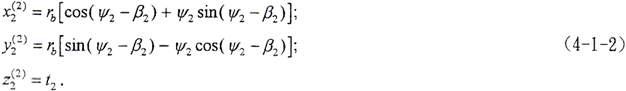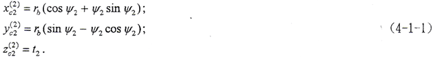 內齒輪為直齒,其端面齒形及坐標關系如圖3-3所示。設端面齒廓線為漸開線,xc2坐標通過漸開線在基圓上的起點,(o,xc2,yc2,zc2)坐標下的齒面方程為