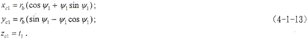 設中截面齒廓為漸開線,xc1坐標軸線通過漸開線在基圓上的起點,(o,xc1,yc1,zc1)坐標下的齒面方程為