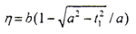 △的計算如下,設鼓形齒鼓度曲線為一橢圓,參數為長半軸a,短半軸b,當a=b時為圓弧。在鼓度曲線上建立局部坐標系(o′,ξ,η),o′為齒寬中線與分度圓線交點,ξ與z1方向相同,η為指向齒輪軸線的方向。在此坐標系上橢圓方程為