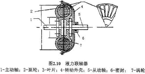液力聯軸器中,充有工作油。當原動機通過主動軸帶動泵輪旋轉時,因離心力的作用,工作油在葉片的帶動下由內側(進口)流向外緣(出口),形成高壓高速的液流,高壓高速的液流沖擊渦輪葉片,使渦輪跟著泵輪同向旋轉。工作油在渦輪中,由外緣(進口)流向(內側)出口的過程中減壓減速,然后再流入泵輪的進口。不斷地循環,把工作油的動能和壓力能換成機械功,通過從動軸輸出,帶動工作機器。整個過程實現了從主動軸到從動軸的傳動。