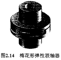 梅花形彈性聯軸器利用梅花形彈性元件置于兩半聯軸器凸爪之間以實現兩半聯軸器的聯接,彈性件可根據使用要求選用不同硬度的聚氨酷橡膠、鑄型尼龍等材料制造。圖2.14為此聯軸器結構圖。