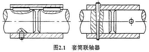 套筒聯軸器結構如圖2.1所示,由一整套公用套筒并利用鍵,花鍵或錐銷等聯接件實現與兩軸的聯接。