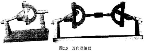 萬向聯軸器可分為單萬向聯軸器和雙萬向聯軸器,用于聯接軸線相交的兩軸,以傳遞轉動和扭矩,能夠保證在兩軸軸線夾角在35°到45°發生變化時,保證所聯接的兩軸連續回轉,可靠地傳遞扭矩。這種聯軸器主要由兩個安裝在主,從動軸軸端上的叉形接頭(單叉),中間聯接件(十字塊),塞銷和銷桿組成,結構如圖2.5。