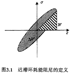 粘彈性材料在簡諧波交變動態載荷作用下,應變滯后于應力一個相角φ,因此在一個循環周期內,應力應變遲滯回線為—標準的旋轉橢圓,如下圖3.1所示,這一橢圓回線的面積△W代表了材料阻尼能力大小,即單位體積耗散的能量,三角形面積W為材料所儲存的最大彈性能密度。