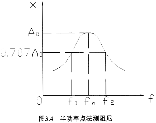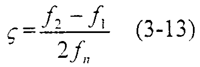 由振動理論知,一個振動系統的能量是與其振幅的平方成正比。系統強迫振動的能量在共振點前后能量為共振時能量的1/2處的兩個頻率f1、f2稱為半功率點頻率,則此半功率點頻率這差值與系統的阻尼比之間有如下關系