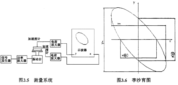 當被測的阻尼較大時,幅頻性曲線和峰值變得不明顯或甚至不出現,這時可用李沙育圖法。該法的測量系統3.5所示