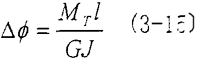 從材料力學中可知,對于一根等截面長度為1,材料的剪切模量為G的圓柱軸段,當兩商加一扭矩MT時,則軸段兩端的盯對扭轉角位移為: