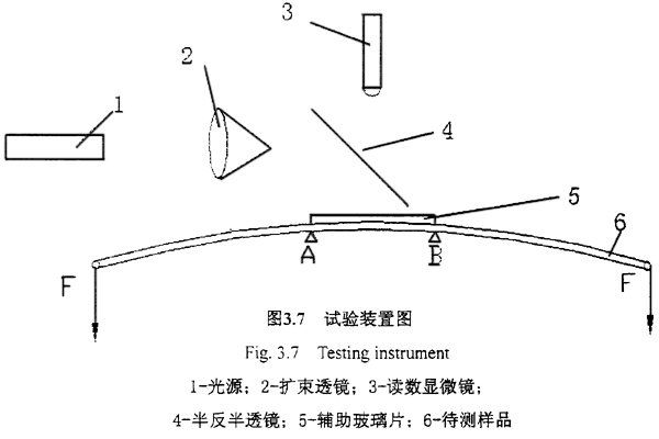 如下圖3.7所示,在A、B兩支點上,放一截面為矩形,長度為L的試件,兩端加外力F(集中力),使試件產生無損彎曲。