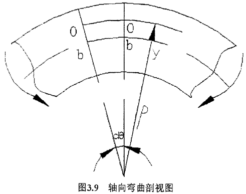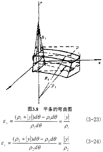 如下圖3.8所示,設ρ1表示試件中曲面與xoy面相平行的曲率半徑,ρ2表示試件中曲面與yoz面相平行的曲率半徑,試件在純彎曲時沿X軸、Z軸的線應變為