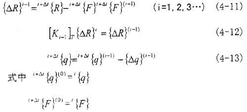 上述方程是根據有限元系統的響應線性化得到的,每一次迭代都是用式(4-11)算小平衡的載荷向量,由這些載荷向量從式(4-10)中導出位移向量,然后繼續迭代直至不平衡線荷同量{ΔR}(i-1)或位移向量qi足夠小為止。