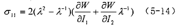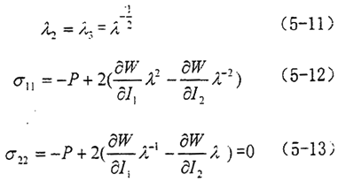 根據(jù)所取W的具體形式,可求出 的表達(dá)式,其中含有材料常數(shù),由試驗(yàn)數(shù)據(jù)求得各伸長(zhǎng)比及對(duì)應(yīng)的應(yīng)力,將多個(gè)試驗(yàn)點(diǎn)的λ和σ11代入式(5-14),可求得這些材料常數(shù)值。