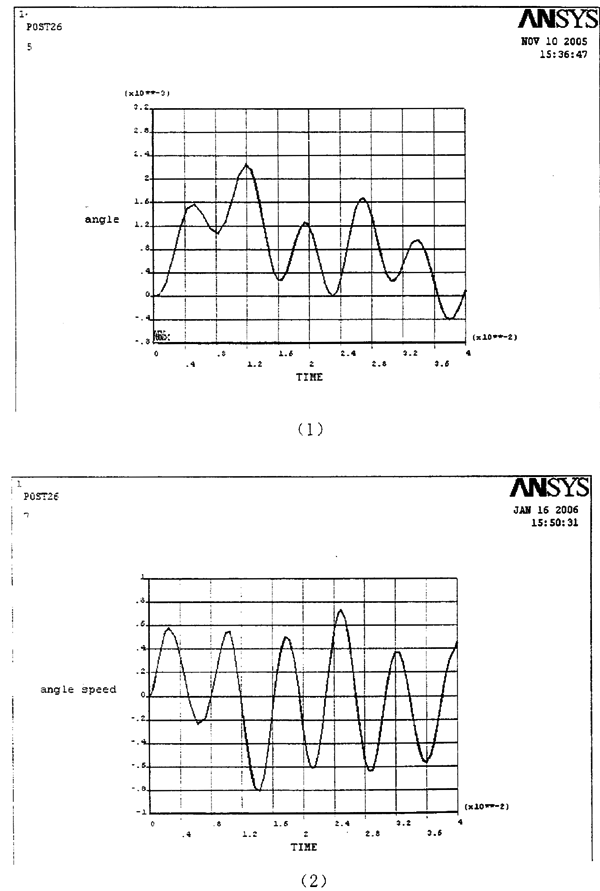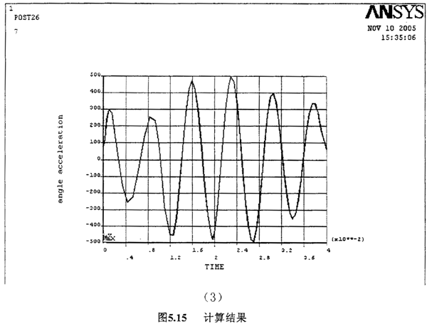 (1)為大小鐵圈的相對(duì)轉(zhuǎn)角,之所以振幅越來(lái)越小是因?yàn)槔碚撝抵械凝R次方程的解隨著時(shí)間越來(lái)越接近于0。(2)為大小鐵圈的相對(duì)角速度;(3)為相對(duì)角加速度。速度和加速度都以類似于正弦曲線發(fā)生改變,之所以沒(méi)有完全按照正弦,是由于阻尼的存在,大大緩解了激勵(lì)載荷對(duì)聯(lián)軸器的影響。