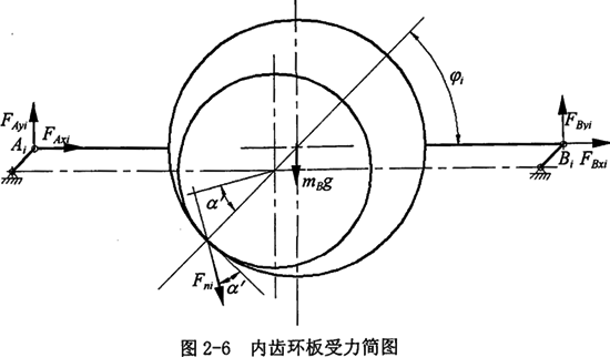 1.轉臂軸承上的作用力分析 內齒環板受力見圖2-6所示。