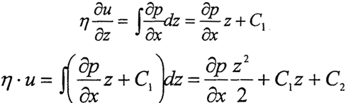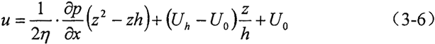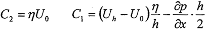 用邊界條件確定C1和C2。由于界面上流體速度等于界面速度,如果兩固體表面的速度為U0和Uh,即當z=0時,u=U0;當z=h,u=Uh。求得