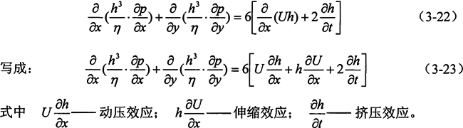 必須強調指出:上式的Reynolds方程是根據一系列假設推導出來的,適用于一般工況條件的潤滑計算。在特殊的工況條件下,當某些假設不能成立時,必須針對具體情況推導相應的Reynolds方程形式。