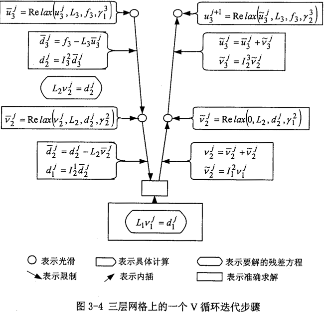 圖3-4所示為三層網格上的一個循環的具體計算步驟。