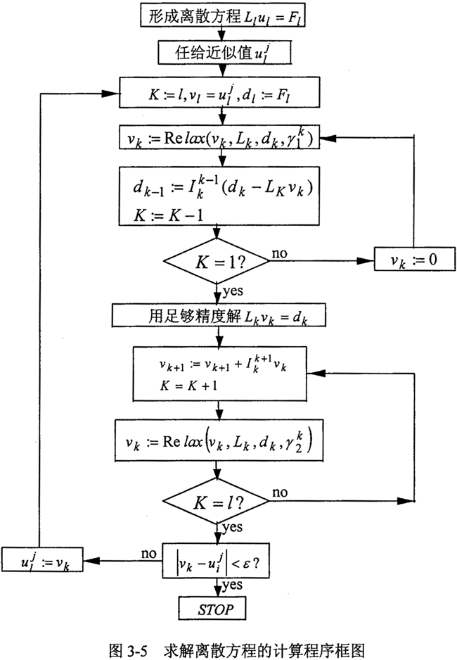 上述過程重復進行,直至在最粗網格上得到滿足精度要求的精確解。